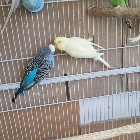 Hej! Mina två undulater söker hem. Den blåa (hona) ca 2 år gammal och den gröna ca 3 år gammal. Hanen är ganska tam.