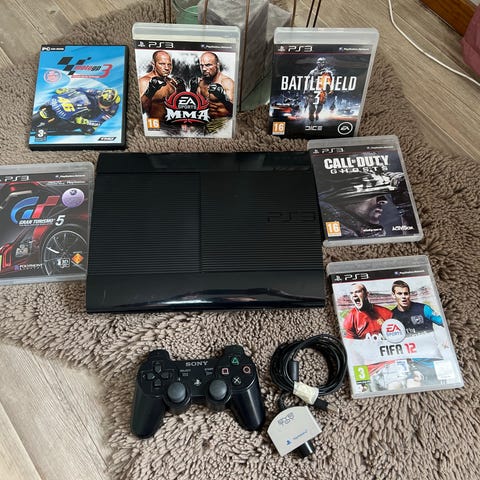 Säljer en PlayStation 3 med 2 original handkontroller och 4 roliga spel (se bild). Allt är i bra skick och fungerar fint.