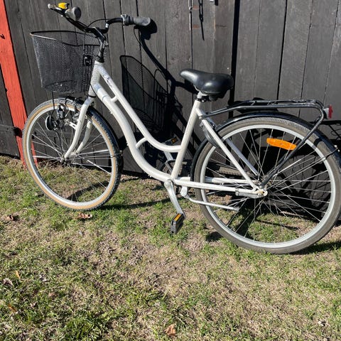 Cykeln är i fint skick och fungerar som den ska. Den har stått skyddad och är redo att användas direkt.