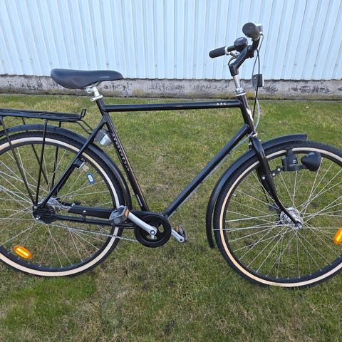 2. svart skeppshult herrcykel, 8 växlar, fortbroms, 28 tum, fast lås, pris 3000kr.