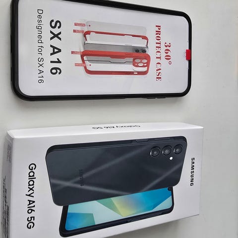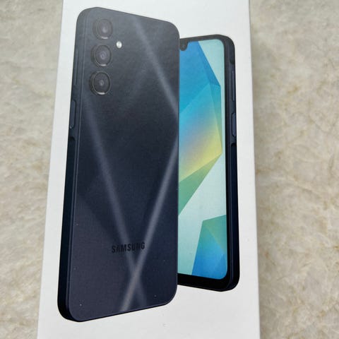 Samsung Galaxy A16 5G mobiltelefon med 128 GB internminne. Modellen tillhör Galaxy A-serien och har stöd för 5G-uppkoppling. Telefonen levereras i originalförpackning enligt bilderna. Lämplig för användning med appar, surf, meddelanden och lagring av bilder, video och andra filer tack vare lagringsutrymmet på 128 GB.