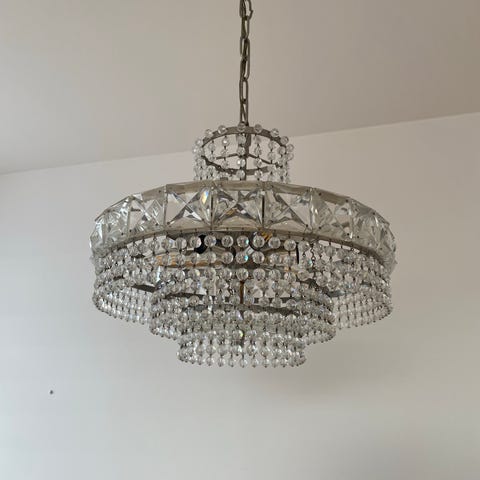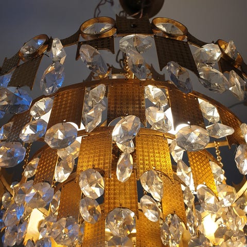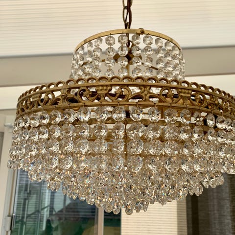 Kristalllampa i mässing.