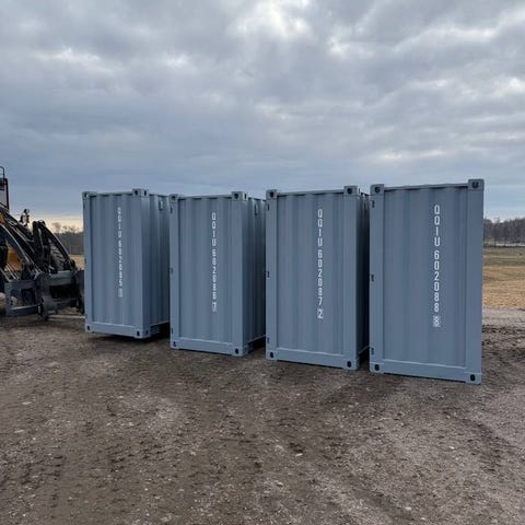 IBC-behållare i plast på pall i vit färg. Behållarna är staplade utomhus och lämpar sig för lagring och transport av vätskor eller andra bulkmaterial. Varje enhet består av en plasttank i metallbur på pall, vilket underlättar hantering med truck eller lyftredskap. Passar för användning inom exempelvis industri, lantbruk eller annan verksamhet där större volymer behöver förvaras eller flyttas. Endast haft vegetabilisk olja I dessa tankar, inga farliga ämnen. Har truckar för hjälp av lastning. Bättre pris vid köp av fler