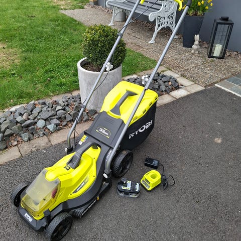 Säljer nu vår fina gräsklippare från Ryobi som bara har använts två säsonger för en mindre gräsmatta, så i nyskick. Inga skador. Gräsuppsamlare följer med. Batteri medföljer ej.