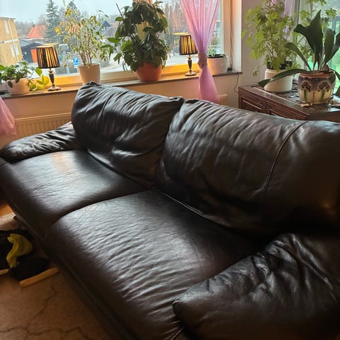 Skinnsoffa som passar i alla rum, neutral färg och tidlös design