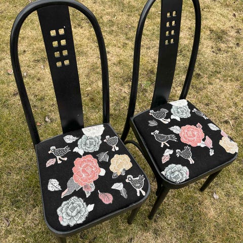 och de är omklädda av amatör = sitsarna sitter inte fast i stolen - behöver lite TLC med sitsarna