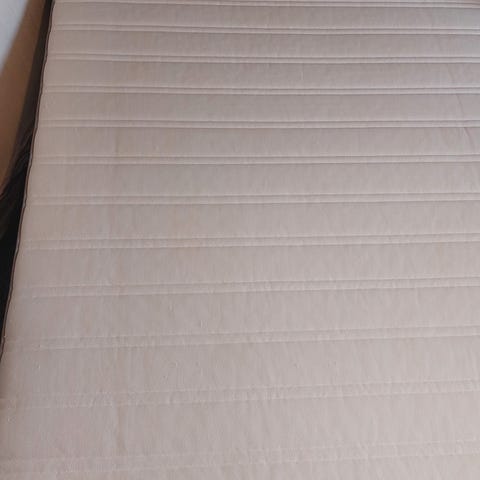 IKEA Hamarvik resårmadrass i vitt tyg. Madrassen har quiltad ovansida med räta sömmar och textilklädsel runtom. Undersidan har mörkare tyg med dragkedja. Passar som huvudmadrass i sängram eller på ribbotten. Exakta mått och hårdhetsgrad framgår normalt av originalmärkning eller IKEA:s produktinformation för modellen.