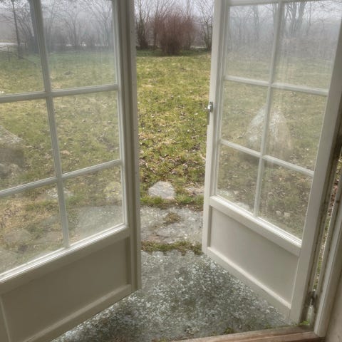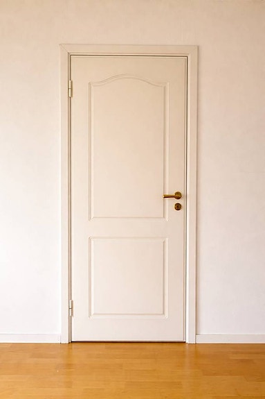 Dubbel vit altandörr med klassiska fönsterrutor som släpper in ett härligt ljus i rummet. De två dörrbladen skapar en generös öppning mot altan eller trädgård och ger en luftig känsla mellan inne och ute.