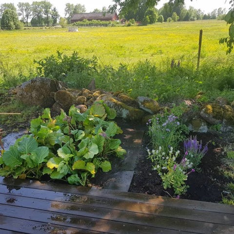 Trädgårdssten i natursten i blandade storlekar. Passar för exempelvis rabattkanter, stenpartier, gångar eller dekoration i trädgård. Stenarna är oregelbundna i form och färg, typiska för natursten, och kan användas både för praktiska avgränsningar och som inslag i trädgårdsdesign.