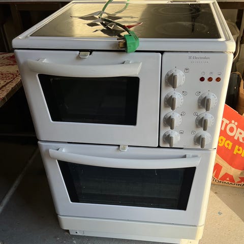 Säljes som den är, alternativt kan jag ta reservdelar från den och sälja, typ ugnsglas, kabel med Perilexkontakt, ugnsskenor, ugnsdörrar, termostat.