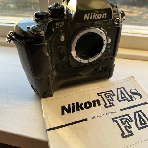Välvårdad, sparsamt använd analog systemkamera. Helautomatisk men går även att inställa manuellt. Går på "vanliga" AA batterier. Kommer med väska, Nikon objektiv 35-70 mm. och bruksanvisning.