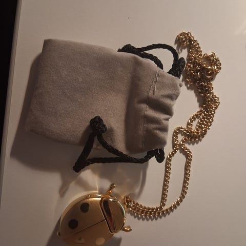 Set med två guldtonade fickur med kedja samt två runda pins. Fickuren har vit urtavla med analoga visare. Pinsen har emaljerade motiv. Lämpligt som accessoarer eller samlarföremål.