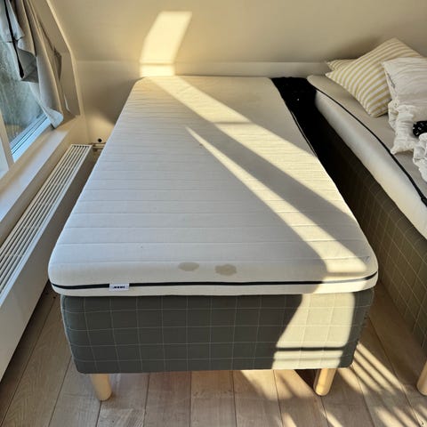Vi säljer vår extra säng i nästan nyskick. I köpt på IKEA i januari 2025.