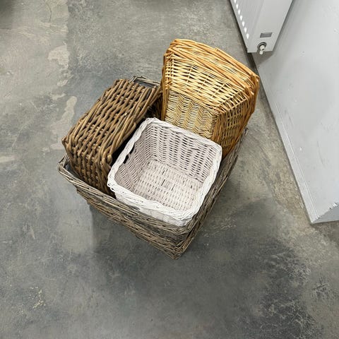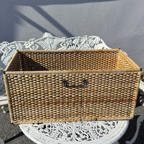 Fin picnic korg i ljus rotting och bambu, mid century modern 1960-tal. Söt även som förvaring till leksaker eller annat.