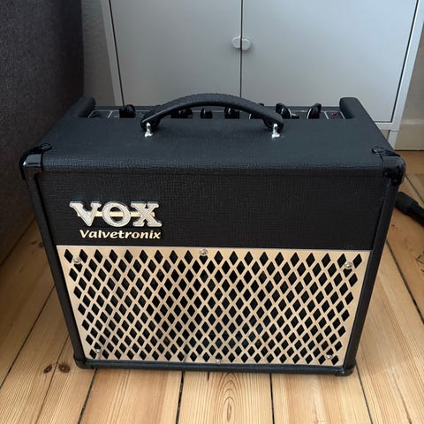 Miniförstärkare på 2 Watt och en plug för bas. Knappt använda och jättefint skick. Roligt, snabbt och enkelt sätt att plugga in din gitarr eller med hjälp av baspluggen en bas. Räcker gott för att öva lite snabbt när man behöver.