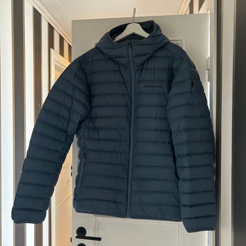 Väger 342g inkl lapparna på min våg, är enligt spec fylld med 103g 800FP dun.