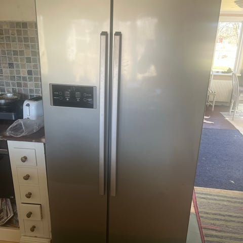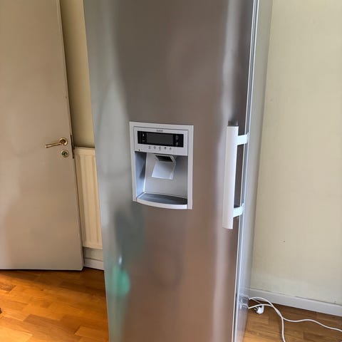 Ytskiktet i rostfritt stål är anpassat för köksmiljö. Side-by-side-lösningen ger gott om utrymme för förvaring av både kyl- och frysvaror i hemmet.