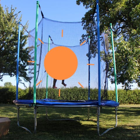 Sparsamt använd under några år. Förvarad inomhus under vintersäsongen förutom metallställningen. Skyddsnät, kantskydd, stege, bruksanvisning och sps medföljer.