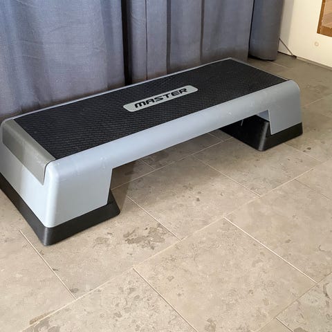 Träningsredskap i paket, stepbräda och hantlar