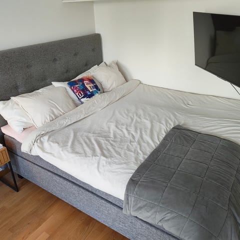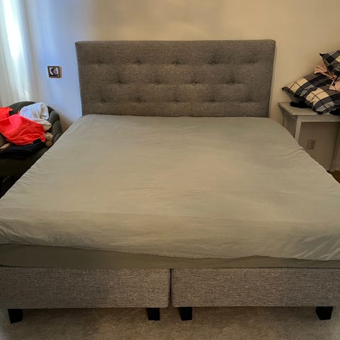 Jysk säng i mörkgrått sammetstyg. 180 bred. Använt men bra skick. Hämtas isärskruvad utanför Åtvidaberg (skruvades isär pga flytt). Pris kan diskuteras på plats,
