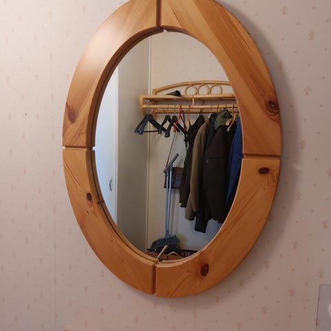 Byrå och spegel i massiv furu. Kan köpas tillsammans för 150 kr eller 100 kr per styck.