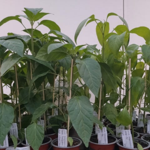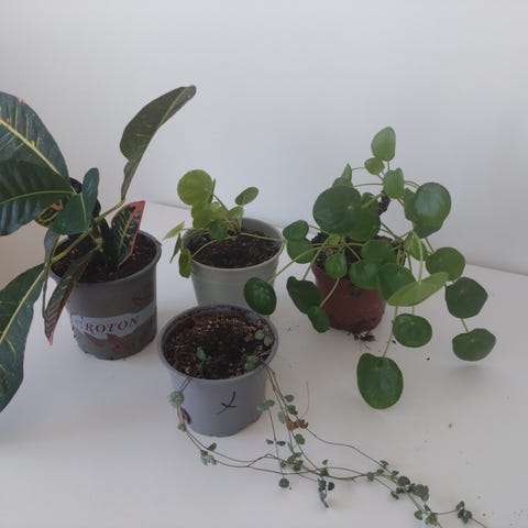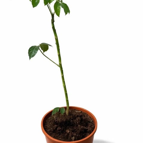 Två plantor Paraplyaralia, ungefär 50-60 cm långa, behöver omplantering till större kruka.