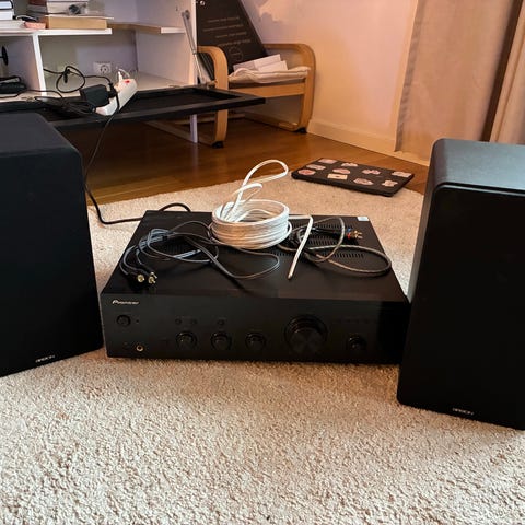 Yamaha förstärkare med högtalare svart