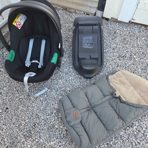 Utanför bilen ger den ett ergonomiskt fullt liggläge, så babyn kan fortsätta sova. Köpt ny 2021, använd knappt 1 år, sedan stått inomhus i förråd. Ett bältesskydd försvann vid rengöring. Självklart inte krockad. Nypriset var 3500kr.