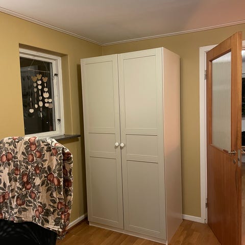 2 st separata Pax garderober i ekfanér. Bra skick med hyllor och trådbackar
