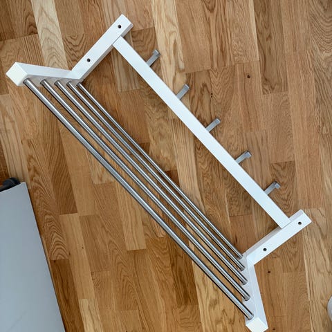 Essem design skohylla, passar perfekt med hatthylla från min andra annons. Fästes i väggen på önskad höjd, går också att använda som hatthylla eller hyllplan över hatthylla med krokar.