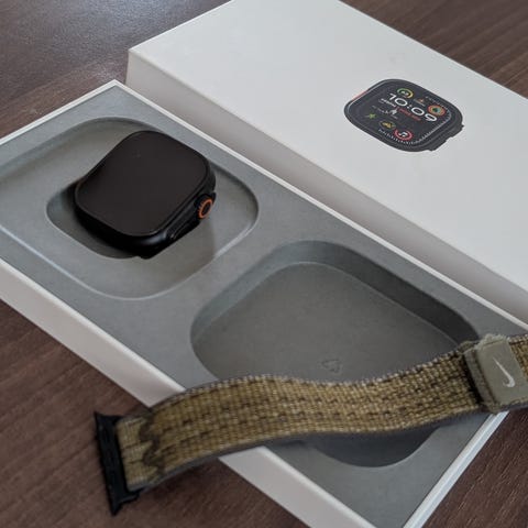 Säljer en Apple Watch Ultra 2 som är 49mm i storlek (Olive Alpine Loop band).