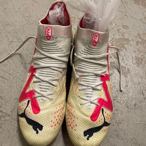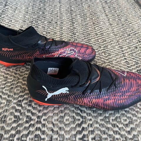 Puma fotbollsskor i grått med orange detaljer och dobbar. Ovandel i textil/syntet med strukturerad yta och snörning framtill. Lämpliga för spel på gräs- eller konstgräsplaner.