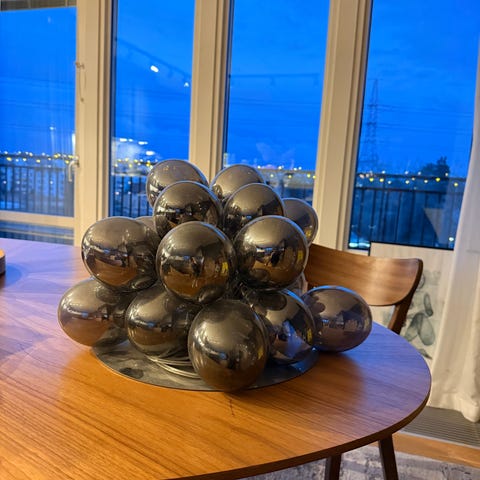 Svart ,färg har rökfärgad glaskupa och fot av matt keramik. Totalhöjd 36,5 cm. Ø glaskupan 32 cm, höjd.