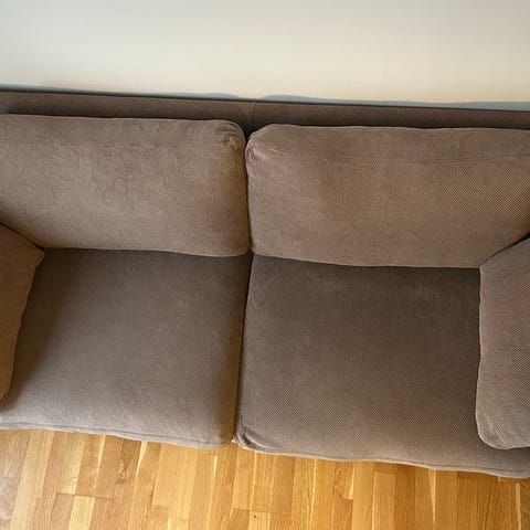 Fin vintage champagnefärgad soffa.