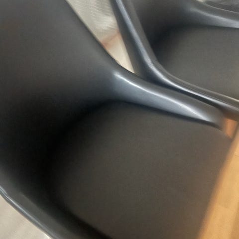 Stol i svart trä med rundad rygg och rak sits. Modellen har fyra ben med stag mellan benen för extra stabilitet. Passar som matstol eller extra sittplats i kök, vardagsrum eller matrum. 500kr/st eller alla för 2000kr Hämtas kl 8-17 på folkungagatan