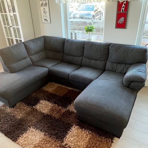 Soffan är ljusgrå 2m.x 60 djup.