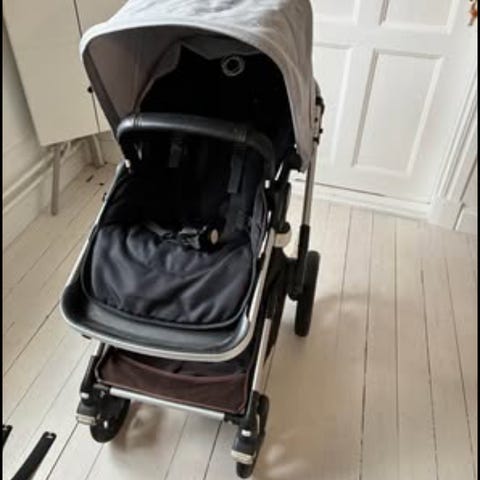 Inköpt 2022, liggdelen är använd i ett par månader bara. Ingår liggdel och sittdel. Vagnen är lätt att fälla ihop och enkel att styra.
