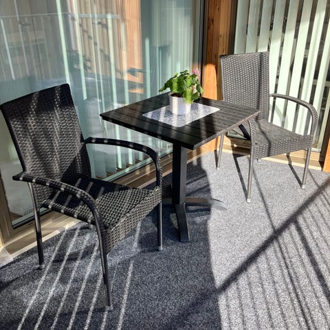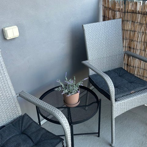 • Stolarna har armstöd samt rygg i flätad konstrotting