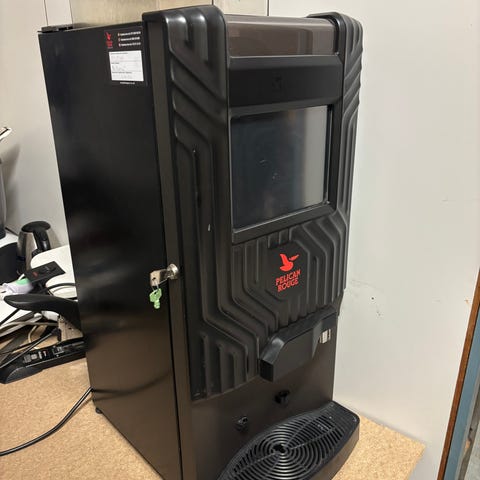 Stor kaffemaskin Coffee Queen CQube LF 04 anpassad för kontorsbruk.