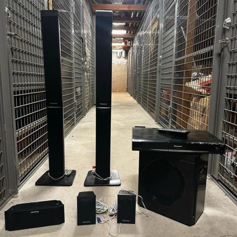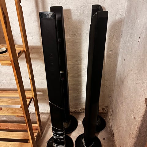 LG högtalarsystem med fristående högtalare och subwoofer i svart utförande. Systemet består av en golvstående högtalare med flera element samt en separat subwooferlåda. Passar för anslutning till kompatibel TV, hemmabio eller ljudanläggning via kabelanslutning enligt kontakter på baksidan av enheterna. Lämpligt för användning i vardagsrum eller TV-rum för film, musik och spel. Exakta modellbeteckningar och effektspecifikationer framgår av etiketterna på baksidan av högtalarna.