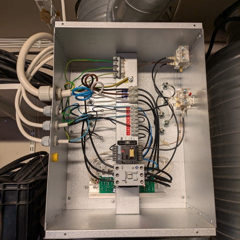 Sparsamt använd, endast 113 tim. Avfuktare i rostfritt utförande. Enheten är utformad för torr luft-utsläpp via anslutningsstos på sidan och har filtersektion på motsatt sida. På frontpanelen finns reglage och indikatorer för driftlägen. Lämplig för avfuktning av krypgrund eller andra utrymmen där kontrollerad luftfuktighet önskas.