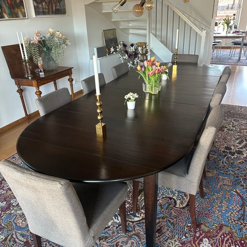 Säljer vårat runda Artwood matsalsbord med 6 st Artwood stolar i sammet.