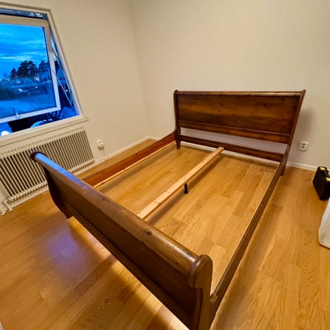 Sängram typ "Grange" säljes, bredd 160 cm. Sängbord säljes ej.