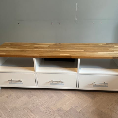 IKEA bänkförvaring i vit färg med fyra öppna fack. Möbeln kan användas som sittbänk, tv-bänk eller förvaringsmöbel i exempelvis hall, vardagsrum eller sovrum. Öppna fack ger plats för korgar, lådor eller andra förvaringslösningar. Tillverkad i träbaserat material med slät yta som är lätt att torka av.