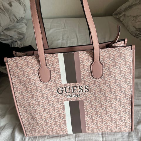 Guess Silvana väska för kvinna i tyg med svartvitt rutigt mönster. Väskan har två korta handtag upptill och dragkedja som huvudstängning. På baksidan finns ett ytterfack med dragkedja. Invändigt finns ett huvudfack som lämpar sig för vardagsanvändning, med plats för mindre personliga tillhörigheter. Materialet är textil med detaljer i syntetmaterial och metallogo framtill.