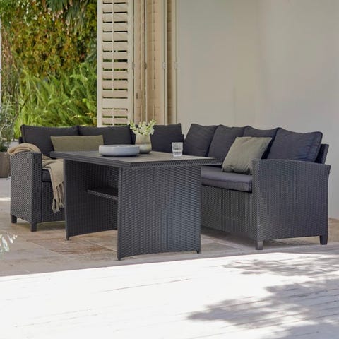 Hörngrupp utemöbler konstrotting grå med bord och fotpall