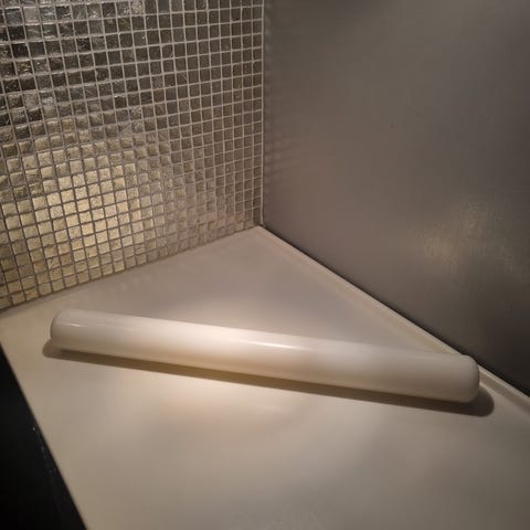 Praktiskt och snyggt Eva Solo knivställ i aluminium. Stället har många fack för knivar.