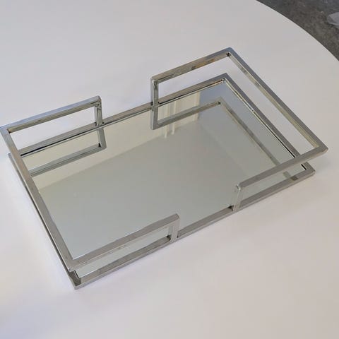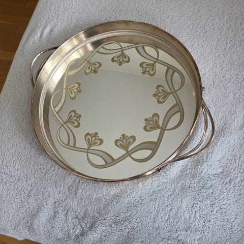 Fin spegelbricka som har använts som en barbricka, 42*25 cm. Stor