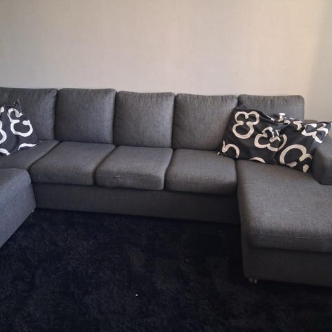 Soffan används idag utan schäslong. Schäslongen har förvarats på altan under en kort tid.