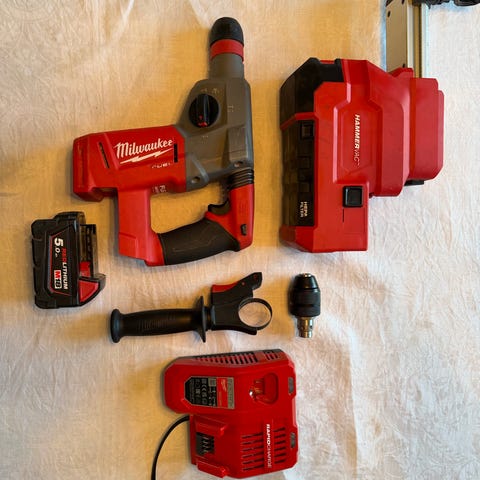 Milwaukee DBSC snabbladdare + 2 batterier, varav ett helt nytt i kartong.